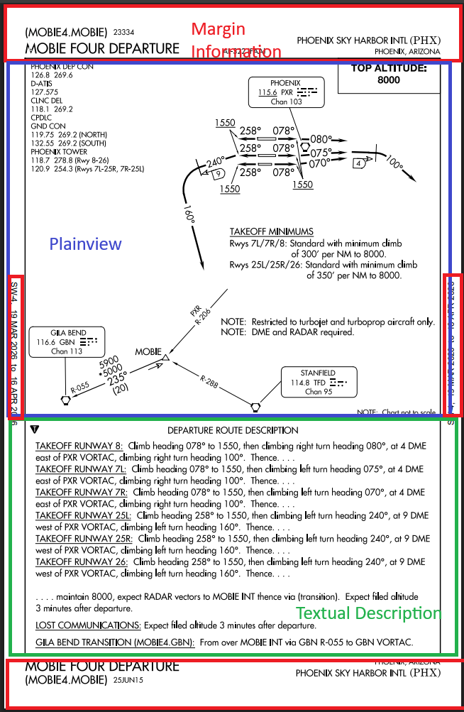 A SID is separated into three sections, the margin, plainview, and textual. Each section will give important information from the SID. We will go deep dive into each section and explain what each symbol and text means.
