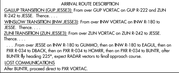 The textual information will give text instructions from the three transitions VORTACs (GALLUP, WINSLOW, AND ZUNI) to JESSE. All three transitions will have different instructions, but once reaching JESSE, they will have the same instructions.