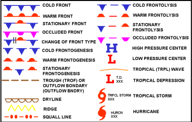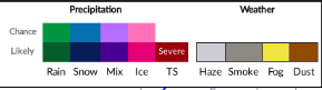 Next, using the legend, we can generally see the precipitation and visibility throughout the map.