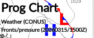 A prog chart (Surface Analysis Prog Charts) is a forecast chart created by the Weather Prediction Center that provides surface pressure systems, fronts, and precipitation for a multiday period.